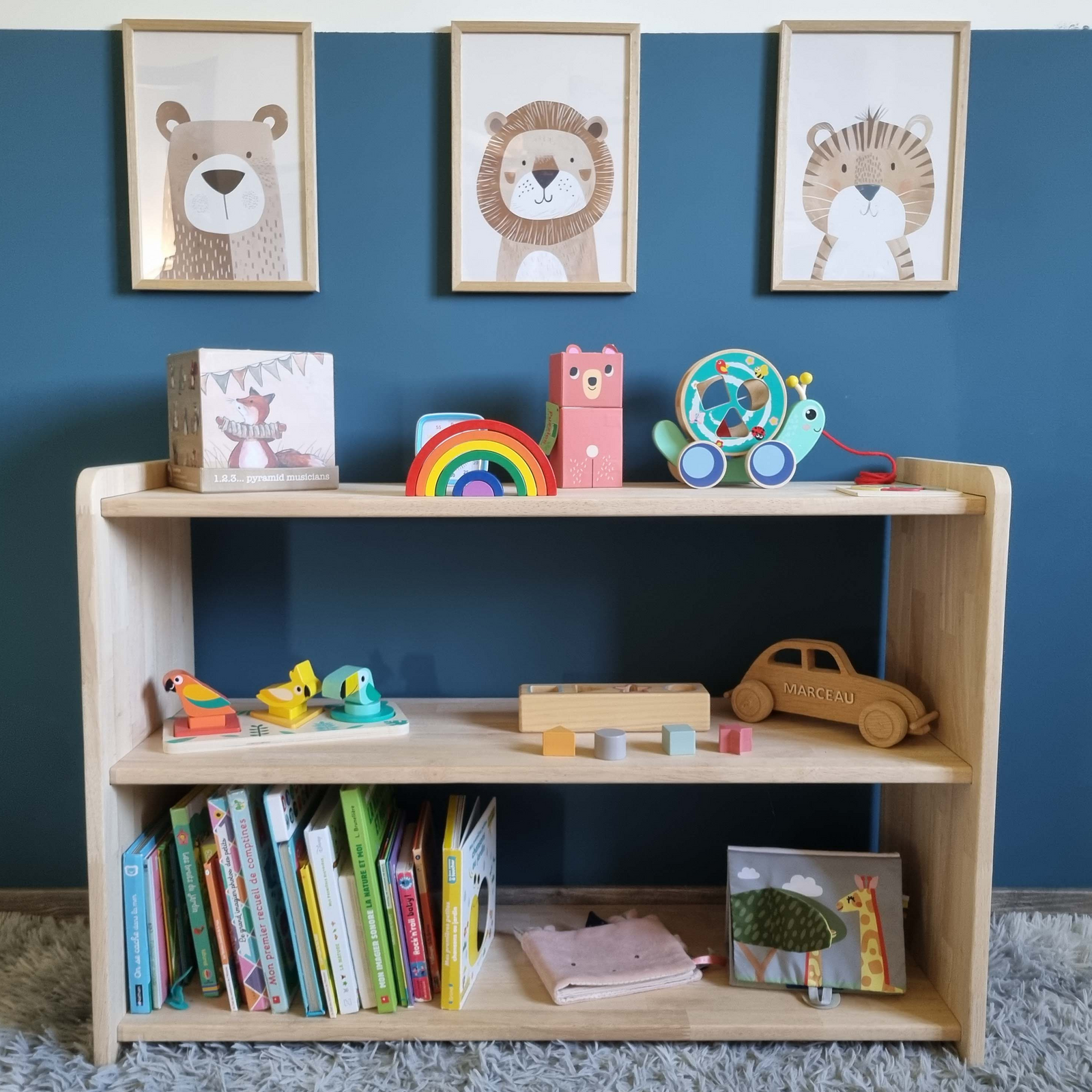 • Choix autonome des jouets et activités : Grâce à son design bas et ouvert, l’enfant peut reconnaître facilement ses objets préférés et choisir librement ses jeux ou plateaux d’activités.